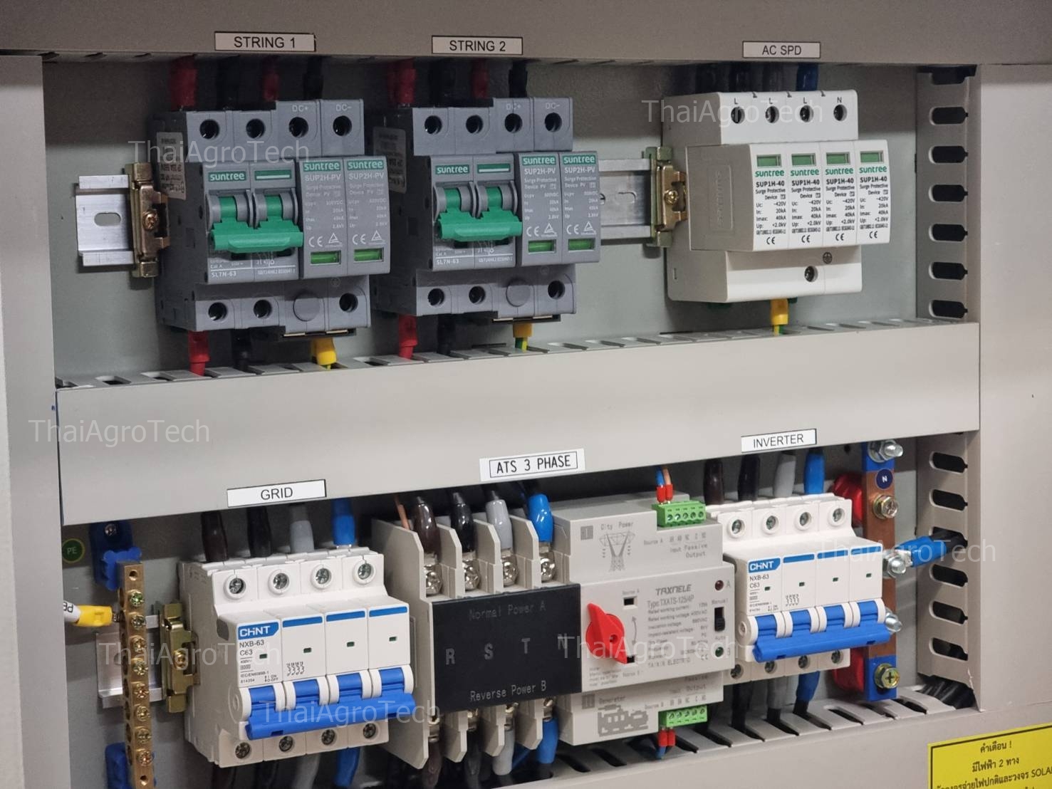 Off-grid Combiner Box มี Voltage Protector ป้องกันแรงดันไฟเกิน และ ATS สลับแหล่งจ่ายไฟฟ้า เหมาะสำหรับเป็นระบบสำรองไฟ หรือ ดัดแปลงเป็นระบบ Hybrid Off-grid